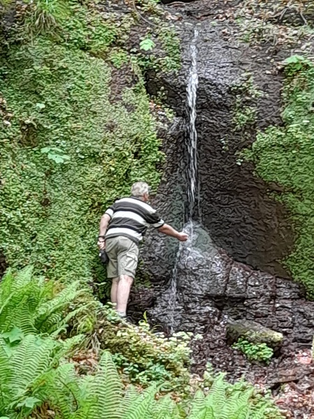 der Weg wieder steiler. Die Grotte selbst ist recht unspektakulär. Angenehmer ist dagegen der kleine Wasserfall