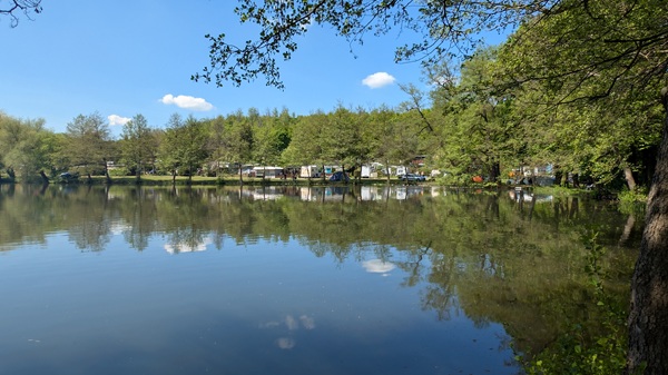 gegenüberliegenden Ufer konnten wir noch unser Wohnmobil erkennen. Mancher Dauercamper hat seine Parzelle