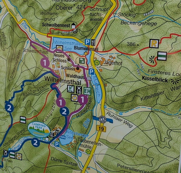 Wir folgen der Beschilderung Richtung Elfengrotte und Wartburg. Es beginnt mit einem kurzen aber knackigen