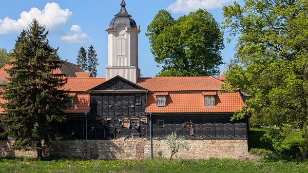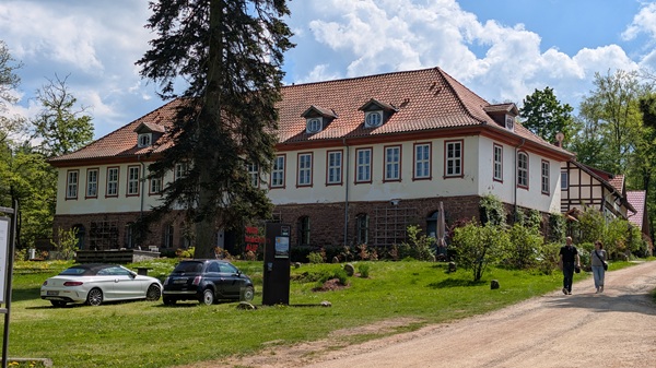 Wilhelmsthaler Schloß zum Wilhelmsthaler See. Vom Parkplatz gegenüber der Blumeninsel wehte uns ein