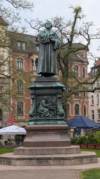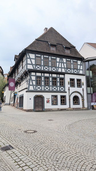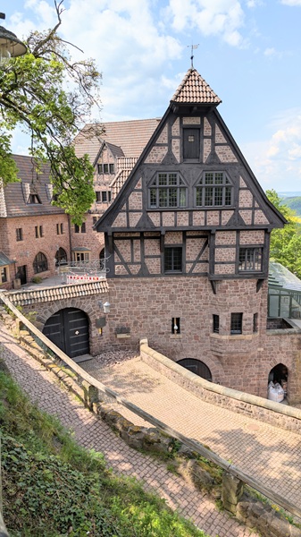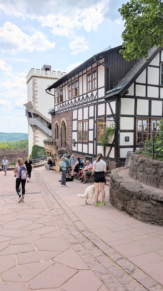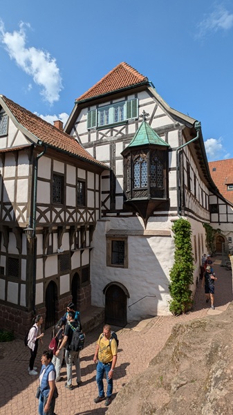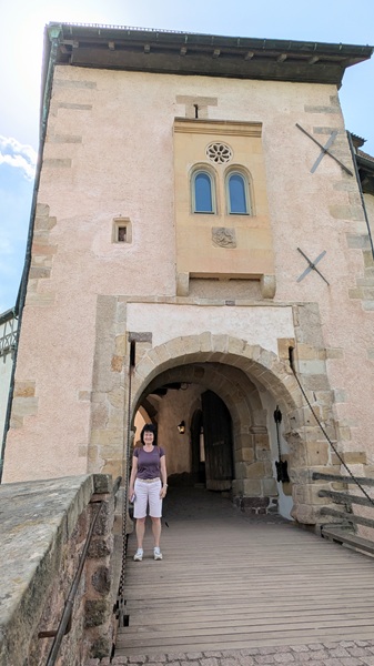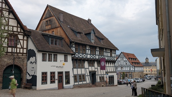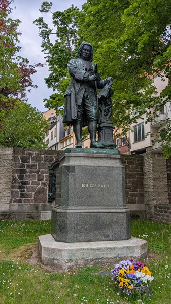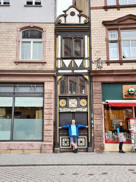 Wieder nutzten wir den Bus, um nach Eisenach zu gelangen. Vom Camping zur Stadt sind es ca. 14 km. Vom Busbahnhof ist es nicht weit zum alten Stadttor, welches in die Altstadt führt. Begrüßt werden wir von der Statue von Martin Luther, einer der beiden berühmten Personen von Eisenach. Die alten Fachwerk- und Backsteinbauten wurden in den letzten Jahren im alten Stil restauriert. Dem ersten Hinweisschild folgend gelangten wir zum schmalsten Haus Thüringens. Es ist ganze 2,05 m breit. Leider kann es (noch) nicht besichtigt werden. Unser Weg führte uns weiter zum Lutherhaus. Nur ein paar 100 m weiter befindet sich das Geburtshaus von Johann Sebastian Bach.