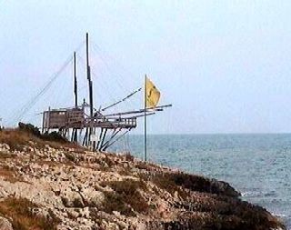 Auf dem Campingplatz Punta Lunga, nördlich von Vieste gelegen, fanden wir dann einen idealen Stellplatz mit direktem Zugang zur Bucht und guten Sanitäreinrichtungen und Einkaufsmöglichkeit. ADAC-Mitglieder erhalten Rabatt! Typisch für den Gargano sind diese Holzbauten, die zum Fischen genutzt wurden.