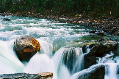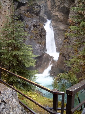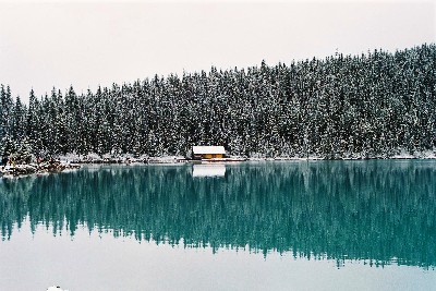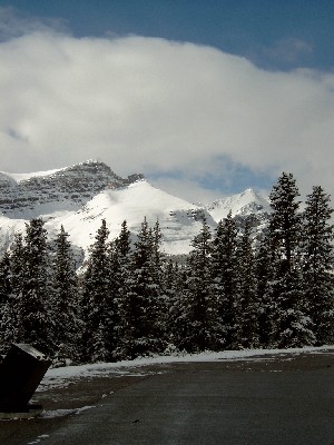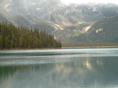 Von Golden ging es wieder östlich über den Kicking Horse Pass, der uns mit dem ersten Schnee an den nahen Winter erinnerte, nach Lake Luise. Ein Abstecher führte uns zur Natural Bridge (eine vom Wasser ausgespülte Brücke aus Fels) und dem Emerald Lake. Die Straße zu den Takakkaw Falls war leider schon gesperrt.