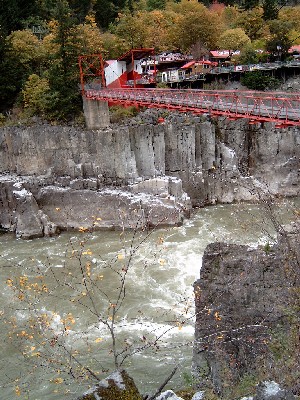 Hells Gate, eine enge Schlucht des Fraser River, sieht im Herbst gar nicht so höllisch aus. Während der Schneeschmelze soll das anders sein.