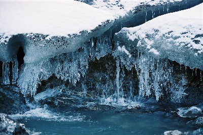 Das Schmelzwasser des Athabasca Gletschers im Columbia Icefield läßt einzigartige Eisfiguren entstehen.