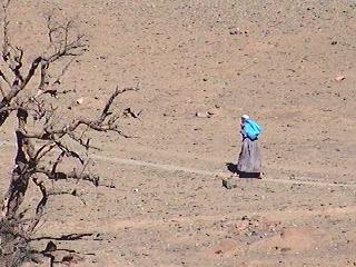 Ein alter Berber auf seinem Weg zu nächsten Markt. Die wenige Handelsware hat er in einem zum Sack zusammengeschlagenen Tuch. Vielleicht findet er unterwegs noch den einen oder anderen Touristen, der ihm etwas abkauft.