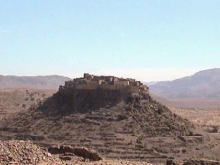 Weit und breit keine Ortschaft. Einsam liegt dieses Hotel auf einer Berghöhe. Früher war es eine gegen Angriffe verfeindeter Stämme ein wehrfeste Kasbah.