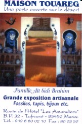 Tafraout, der größte Ort im Süden des Antiatlas. Hier finden größere Märkte statt. Nach einem freundlichen Empfang nach Berbersitte mit Pfefferminztee können Sie bei Maison Touarek viel Interessantes über die Herstellung der Berberteppiche erfahren. Kaufzwang gibt es nicht! Ein Besuch lohnt sich aber immer. Klicken Sie auf die Visitenkarte zum Download.