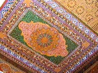 Das ist kein Teppich, sondern ebenfalls eine kunstvolle Deckenarbeit. Die Wände sind bis Kopfhöhe ohne jegliche Verziehrungen.
