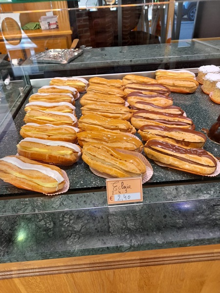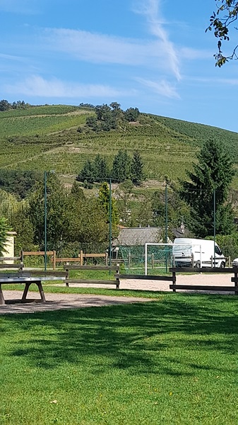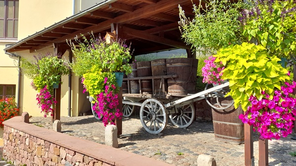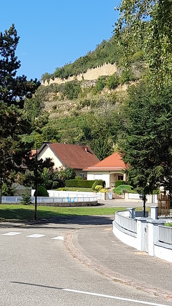 Blauer Himmel und Sonnenschein. So, wie gestern, lockt uns die Sonne raus. Und heute wird es noch wärmer. Einen richtigen Plan haben wir nicht. Als Erstes wollen wir die Cave de Turckheim, ein Weingut, in Augenschein nehmen. Am Ende haben wir 2 Kartons Wein gekauft, den wir morgen, vor der Abfahrt zum Genfer See, noch holen müssen. Auf dem Weg zurück machen wir einen Abstecher zur Aufzuchtstation für die Störche. Leider war geschlossen. Ohne großen Plan wollten wir einfach dem Bach, der durch Turckheim fließt, etwas folgen. Linker Hand den etwas wehmütigen Blick Richtung Weinberge, sind wir bis Ingersheim, der Nachbargemeinde von Turckheim gekommen. Vorbei an einer Bäckerei, die mit süßen Leckerein gelockt hat, haben wir es noch bis zum Weingut Jean Geiler geschafft. Bisschen probieren und noch ein paar Flaschen kaufen. Mit "leichtem" Gepäck sind wir die gleiche Strecke zurück. Am Ende des Tages haben wir ersatzteilgeplagten Zweibeiner mehr als 10 km geschafft.