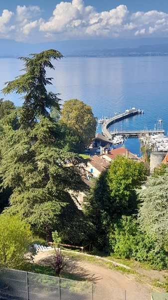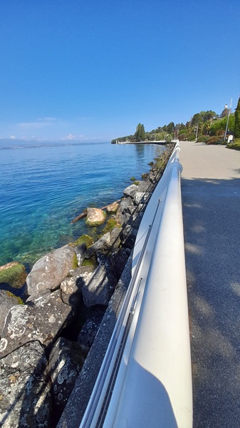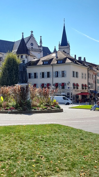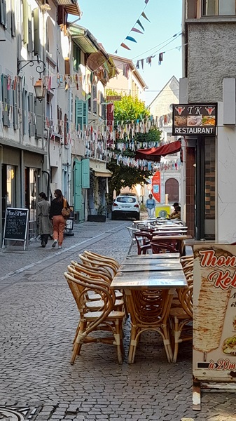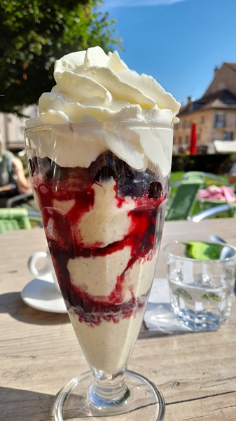 Die Sightseeing-Tour begann eher im neueren Teil von Thonon, der trotzdem gut gestaltet war. Danach ab in die Altstadt mit ihren engen Straßen, in denen so manches Geschäft gelockt hat. Allerdings sind die Preise auch touristisch angehoben, was das Nichtkaufen wesentlich erleichtert. Bevor wir genug gesehen haben und wieder mit der Bahn den Weg nach unten antraten, konnten wir nicht umhin, das vorerst letzte Eis des Jahres zu genießen. Ob's dabei bleibt?