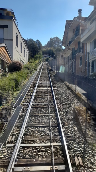 Und das tat er dann auch. Endlich war die richtige Promenade erreicht. Dafür war das Schuhwerk auch besser geeignet. Bei einer kurzen Pause auf einer schönen weißen Bank sah die Welt schon wieder ganz anders aus. Wir wollten aber auch noch etwas von der Stadt sehen. Also weiter. Das Zentrum liegt auf einen Berg, wo eine Bahn hinführt. Auf dem Weg zur Station ging es an den unterschiedlichsten Restaurants vorbei.