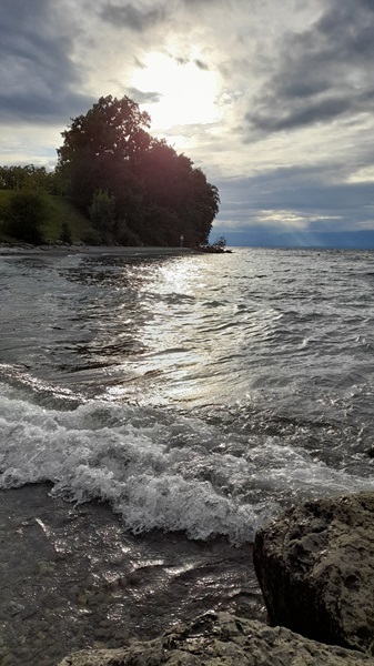 Die restliches Zeit des Tage im Camper zu verbringen, war uns dann doch nichts. In ein paar Minuten sind wir am See und können den Wellen zusehen. Die Sonne lässt sich wohl heute nicht mehr blicken, so sehr ich sie auch suche. Ein paar letzte Strahlen schickt sie dann doch noch.