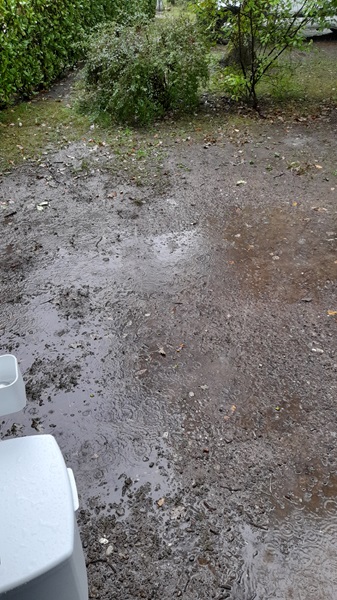 Die Wetter-App hat leider Recht gehabt. In der Nacht fing es an zu regnen. Unser Stellplatz