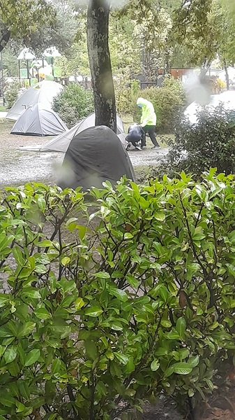 unterwegs waren. Bei strömenden Regen durften sie ihre Zelte aufbauen. Wie gut haben es wir doch im